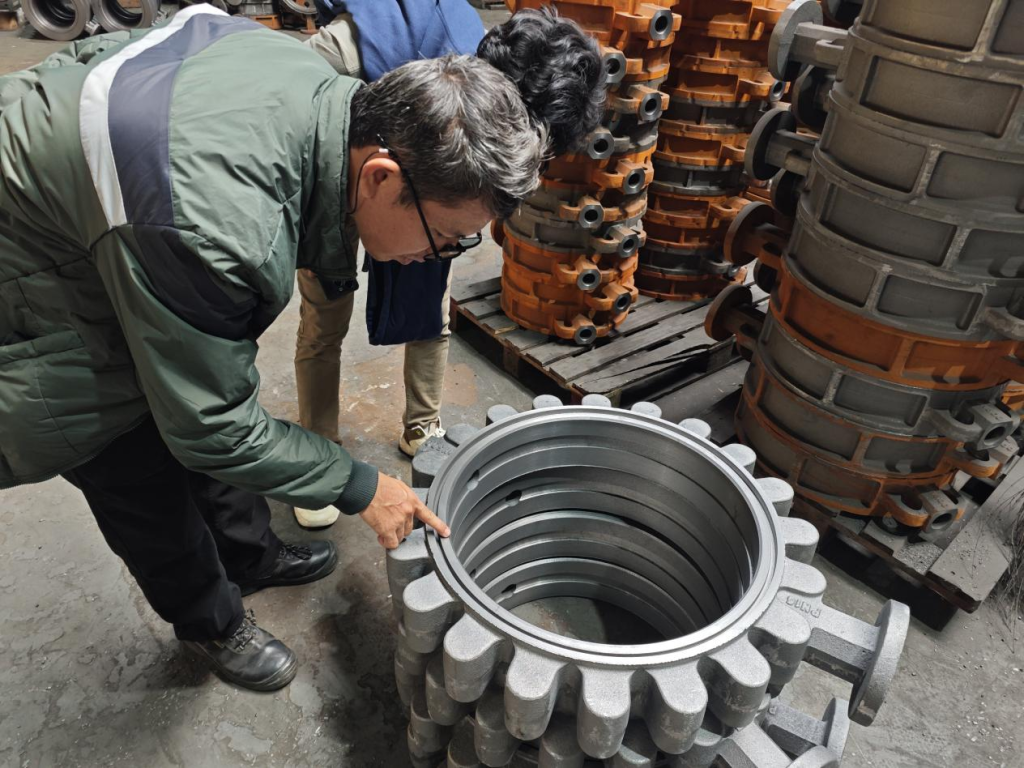 We introduced the complete production process in detail, including raw material inspection, machining, assembly, pressure test, and inspection. The customer also reviewed our test machine and testing process, including shell tests, seat tests, and functional testing of valves.